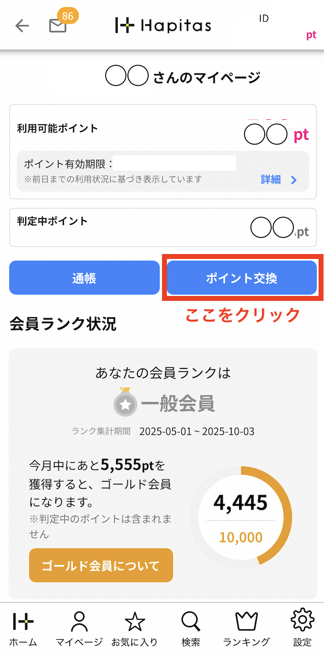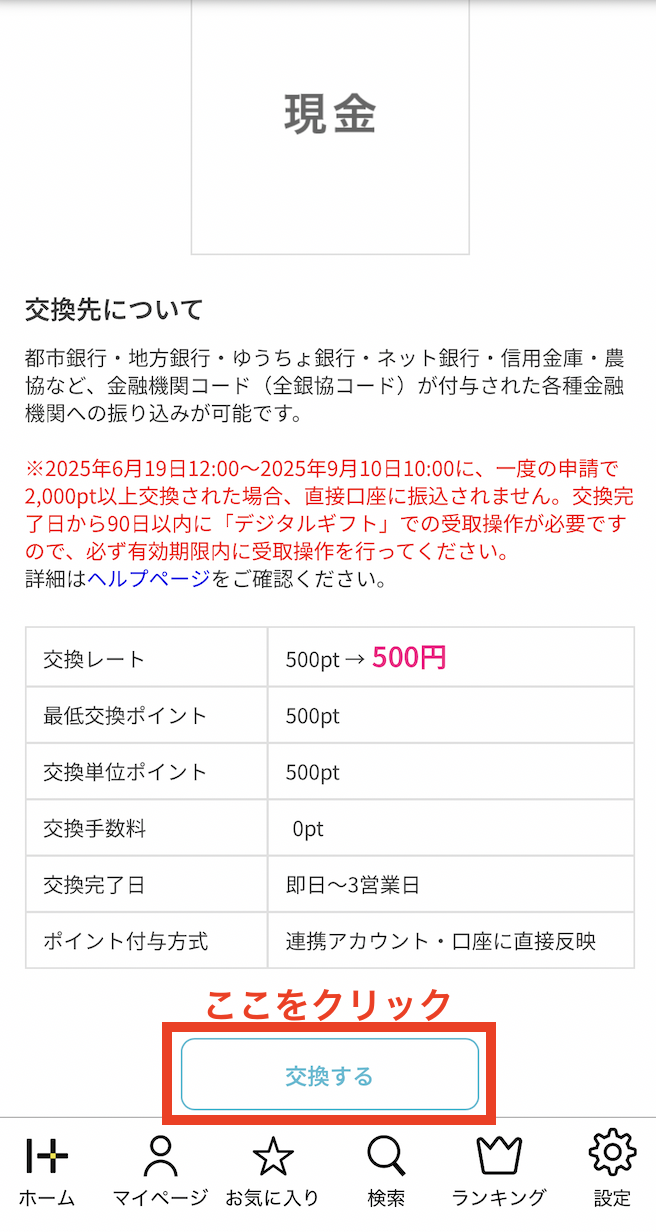 『ポイント交換』と書かれてあるボタンをクリックします。