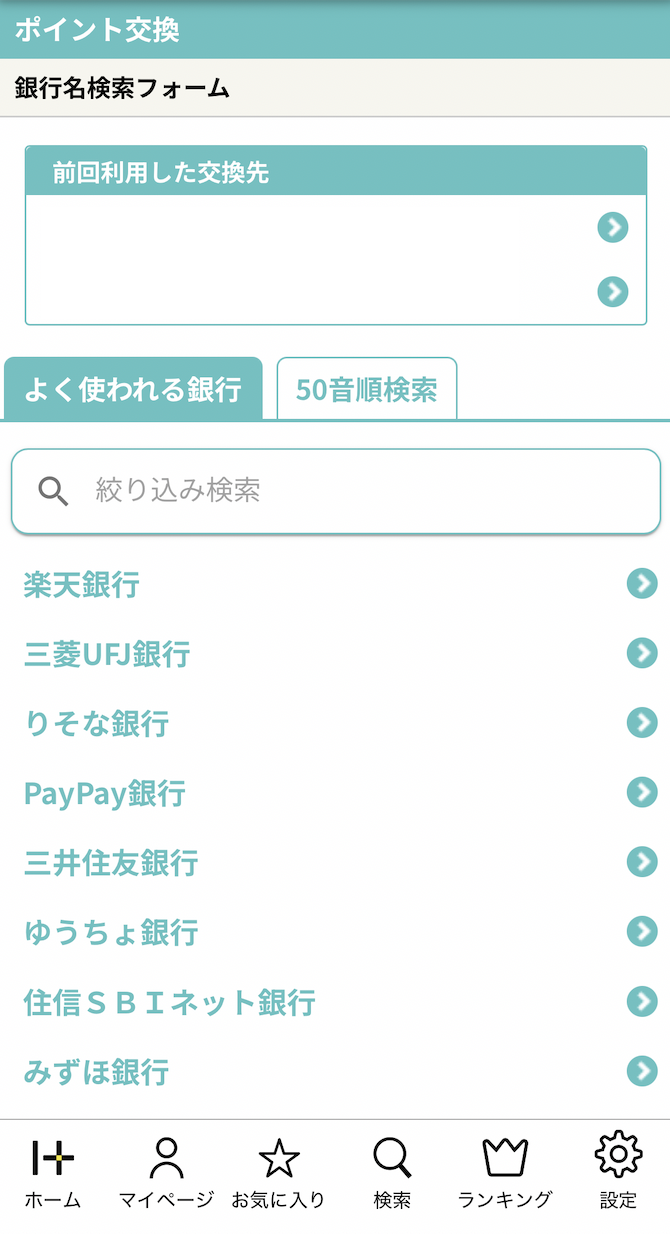 現金に交換する場合は、振り込みたい銀行/支店を選定して振込先を指定します。