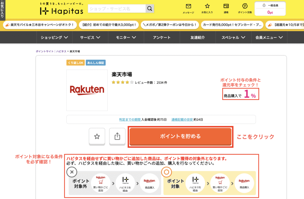 ここまでの話を読んで、「早くハピタス経由でお買い物してポイントを貯めたい!」ワクワクした方もいらっしゃると思います。
